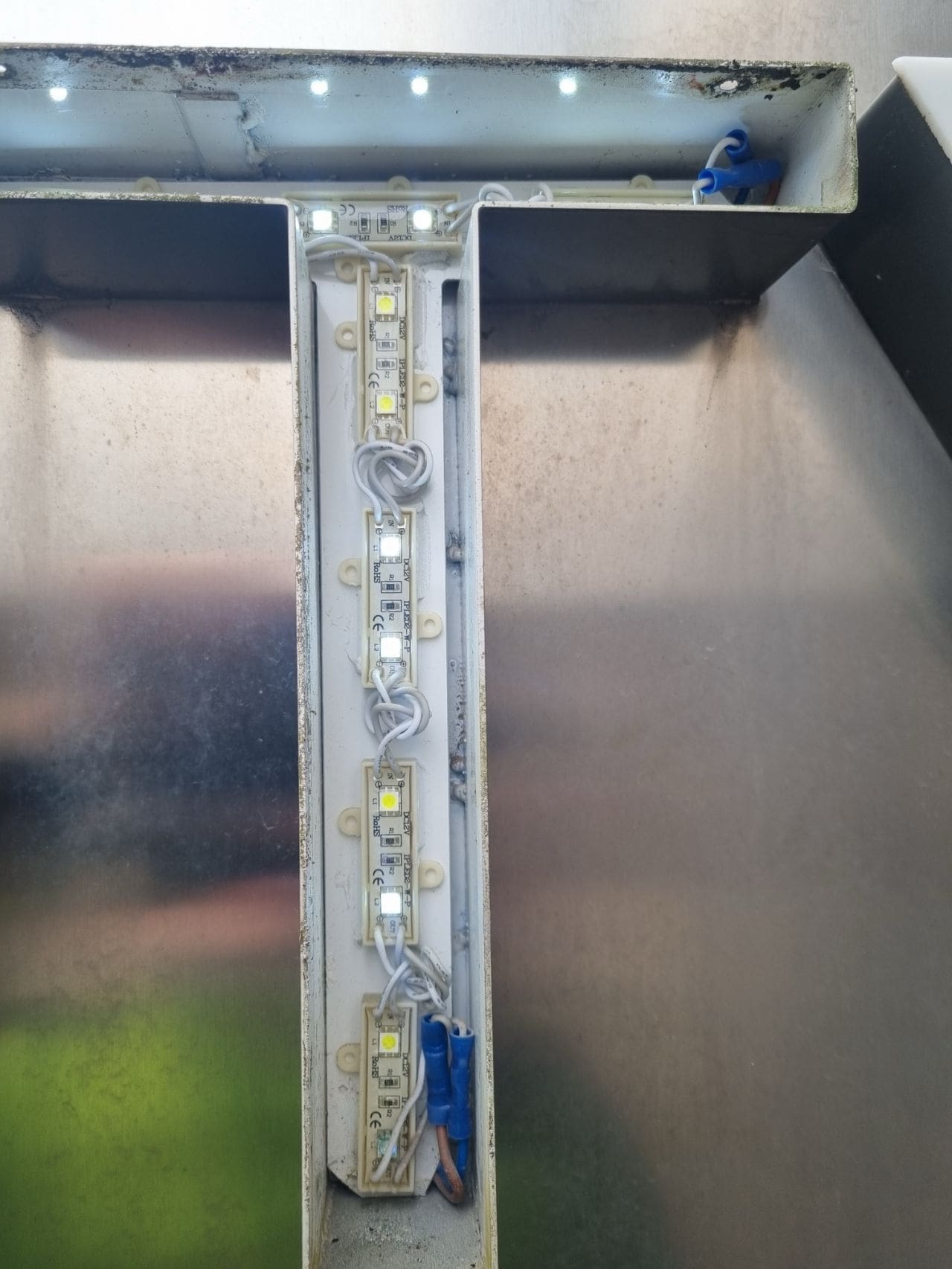 Så här kan skyltar se ut efter 12 års trogen tjänst. Inte undra på att dom inte lyser som dom ska. Efter byte av LED, tvätt av fronter samt utrotning av mossa lyser nu Riksbyggens skyltar som dom ska igen!