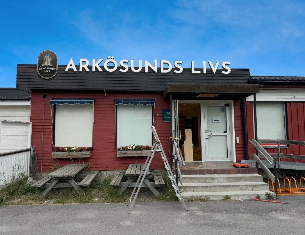 I helgen hade Arkösunds Livs premiäröppning! Vilken butik, och vilket utbud! En delidisk utöver det vanliga tillsammans med allt annat man kan tänkas behöva. Vi fick möjligheten att leverera utvändig och invändig skyltning, tillsammans med fönsterdekor och en hel del foliering. Vi folierade bland annat frysar, kassadiskar och ett helt kylrum till ett mejeri! Vi lägger stort värde i att det vi presenterar i förslagsstadiet också är det som kunden får levererat. Bild 1-2 är våra förslag på den utvändiga skyltningen, bild 3-4 visar skyltarna efter färdig installation.