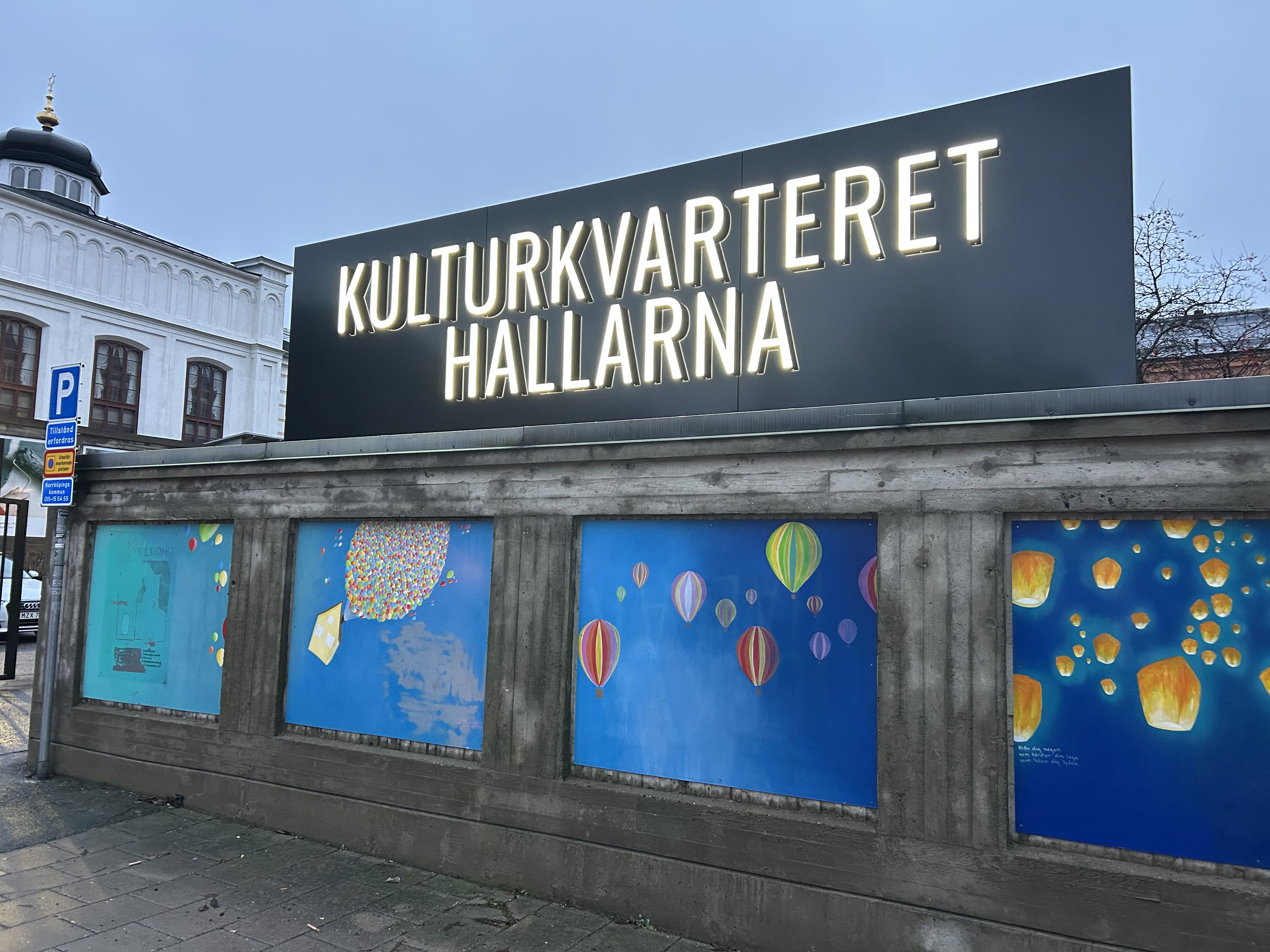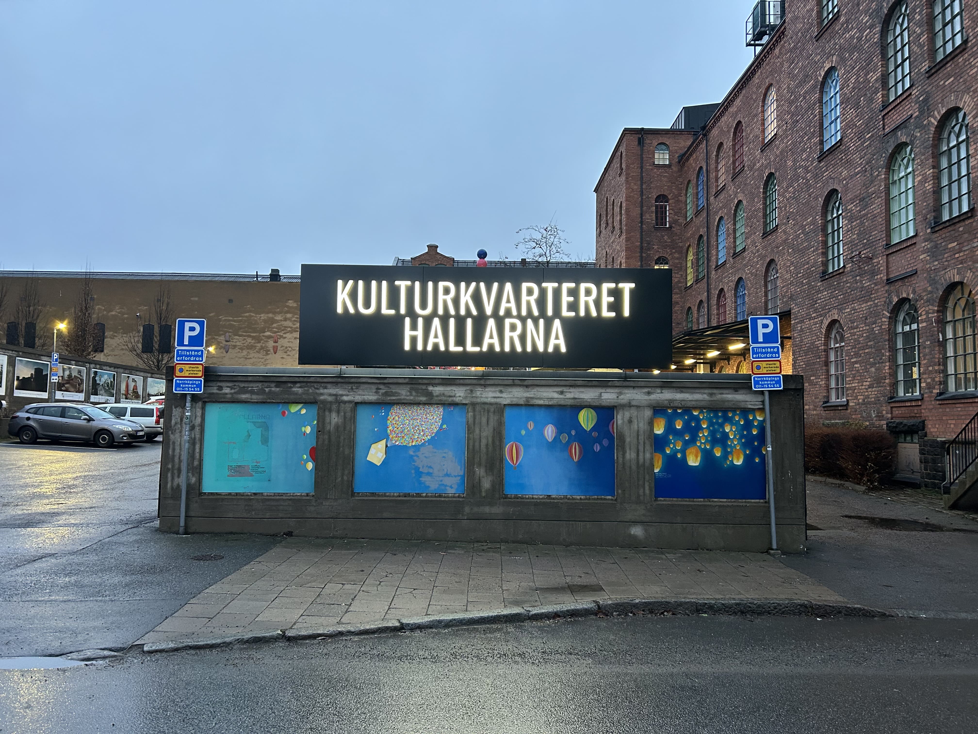 I slutet av förra året fick vi i uppdrag att ta fram en ny takskylt till Kulturkvarteret Hallarna i Norrköping. Deras gamla hade gjort sitt, minst sagt. Vi föreslog en P6 text monterad på bakgrundsplåt, kunden nappade direkt. Strax innan julledigheten slutfördes projektet. Tack för förtroendet!