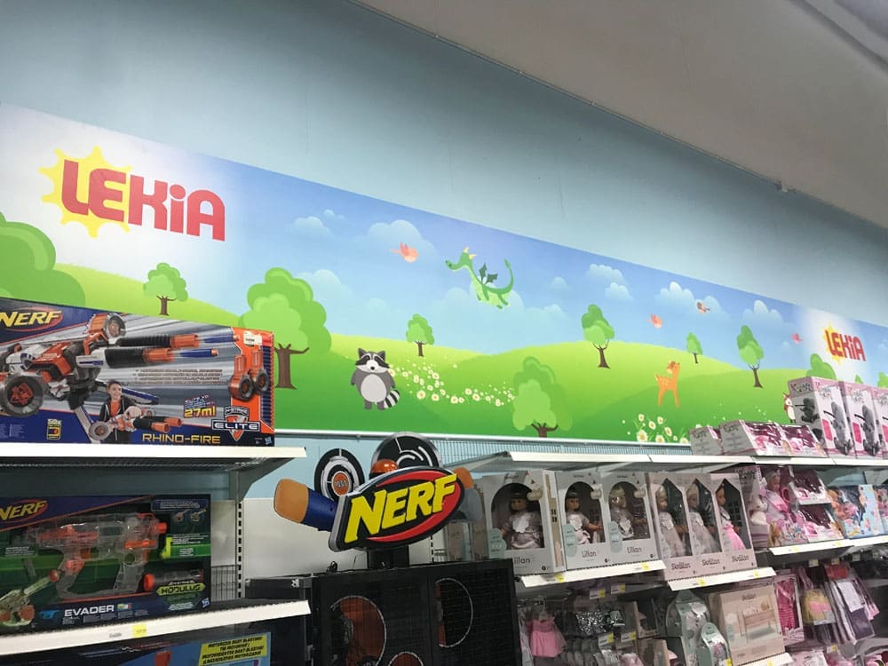 Lekia/Babya i Norrköping flyttade nyligen in i ny lokal vid Ingelsta Handelscentrum. Vi fick förtroendet och hjälpa Lekia/Babya med lite av varje, bland annat fasadskyltar samt väggtapet. Reslutatet blev som synes riktigt bra!